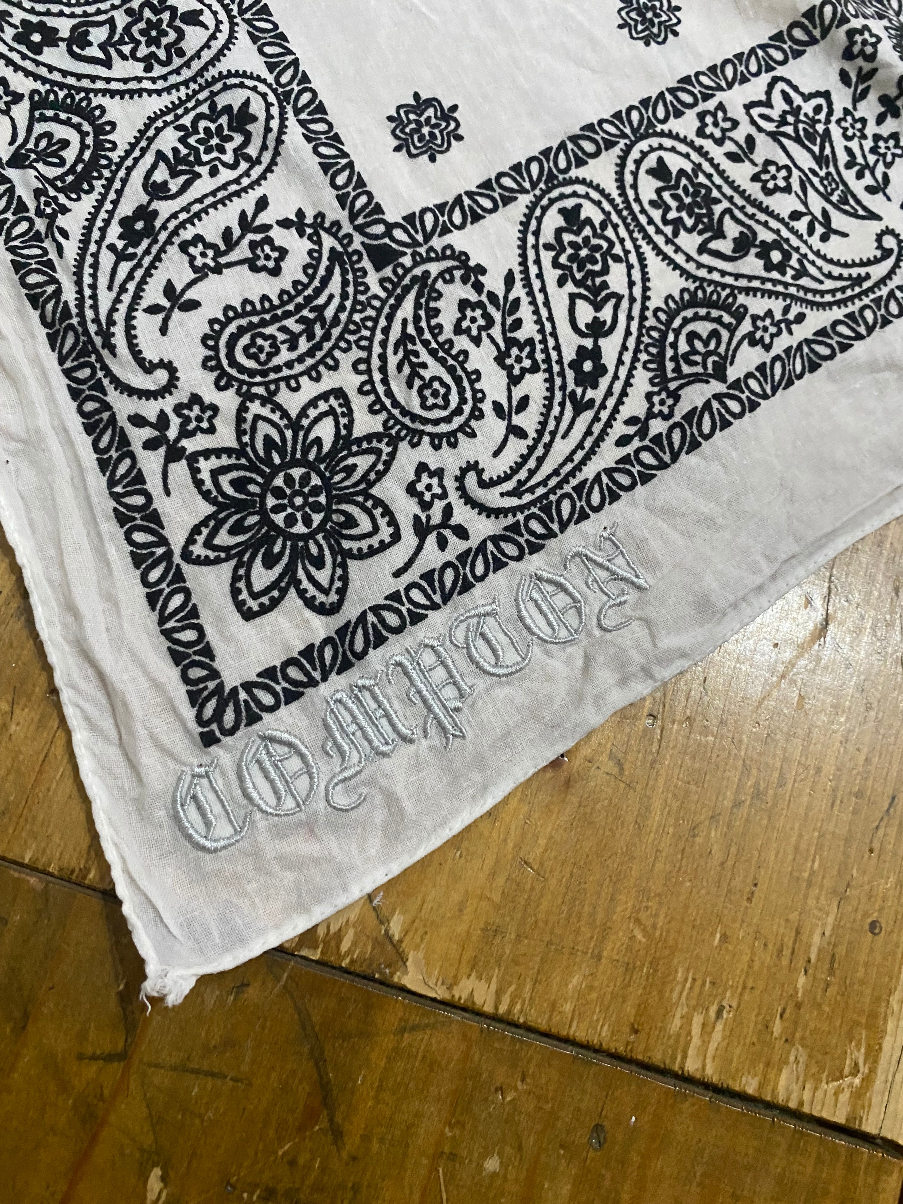 アメリカで買い付けたギャングホワイトバンダナには漢の"compton"