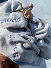 首元フーディーに刺繍位置も